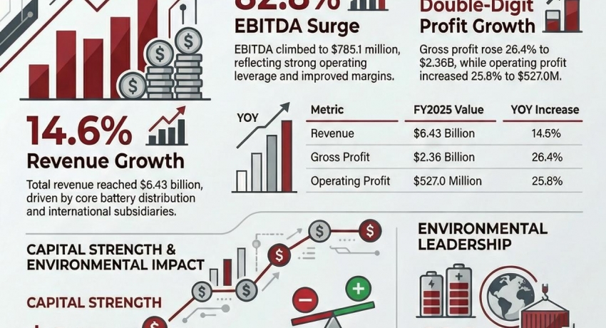 • Revenue Growth: Gross operating revenue increased by 14.6% to $6.44 billion, driven by core battery distribution and international subsidiary contributions.